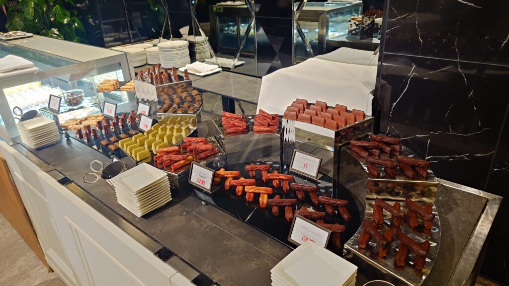 会場に一歩足を踏み入れると、そこにはキラキラと輝くシャンデリアと、ずらりと並んだ豪華な料理の数々。 ローストビーフの切り分けサービスや、色鮮やかな前菜、魚介、様々なデザートなどなど……。「どれから食べよう?」と迷うのも、ビュッフェならではの醍醐味ですね。