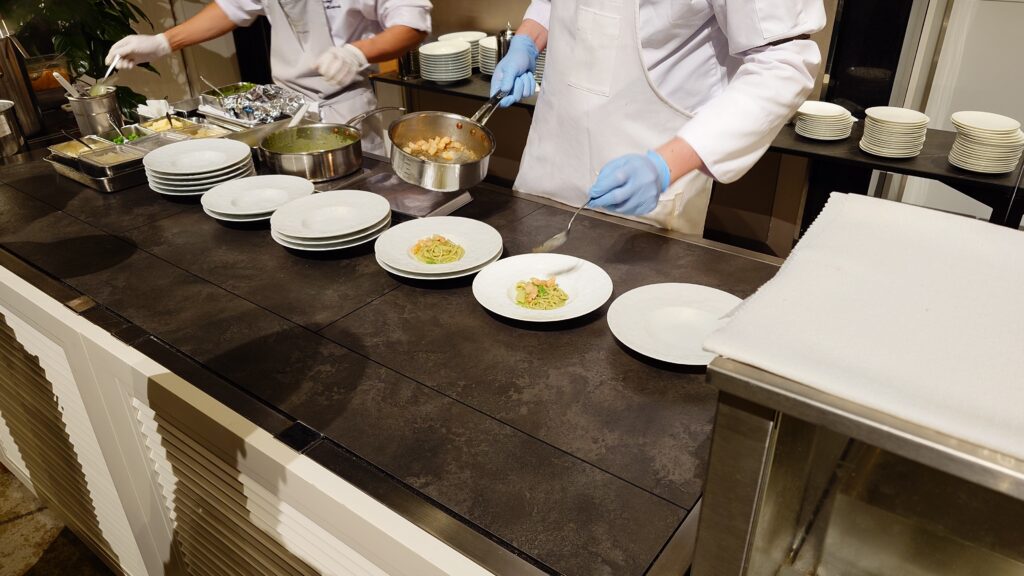 特に人気だったのは、シェフが目の前で仕上げてくれるライブキッチン!出来立ての熱々を味わいながら、あちこちで「美味しいね!」という声が上がっていました。