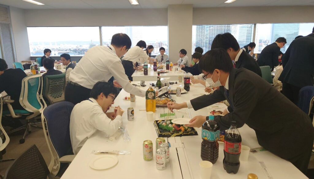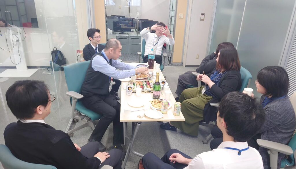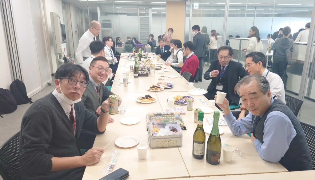 普段はそれぞれのデスクで集中して仕事に向き合っていますが、今日はみんなでリラックス。 この一年間にあった苦労話や、思わず笑ってしまうような失敗談、そして来年に向けた熱い抱負など、あちこちで会話に花が咲く温かい時間となりました。